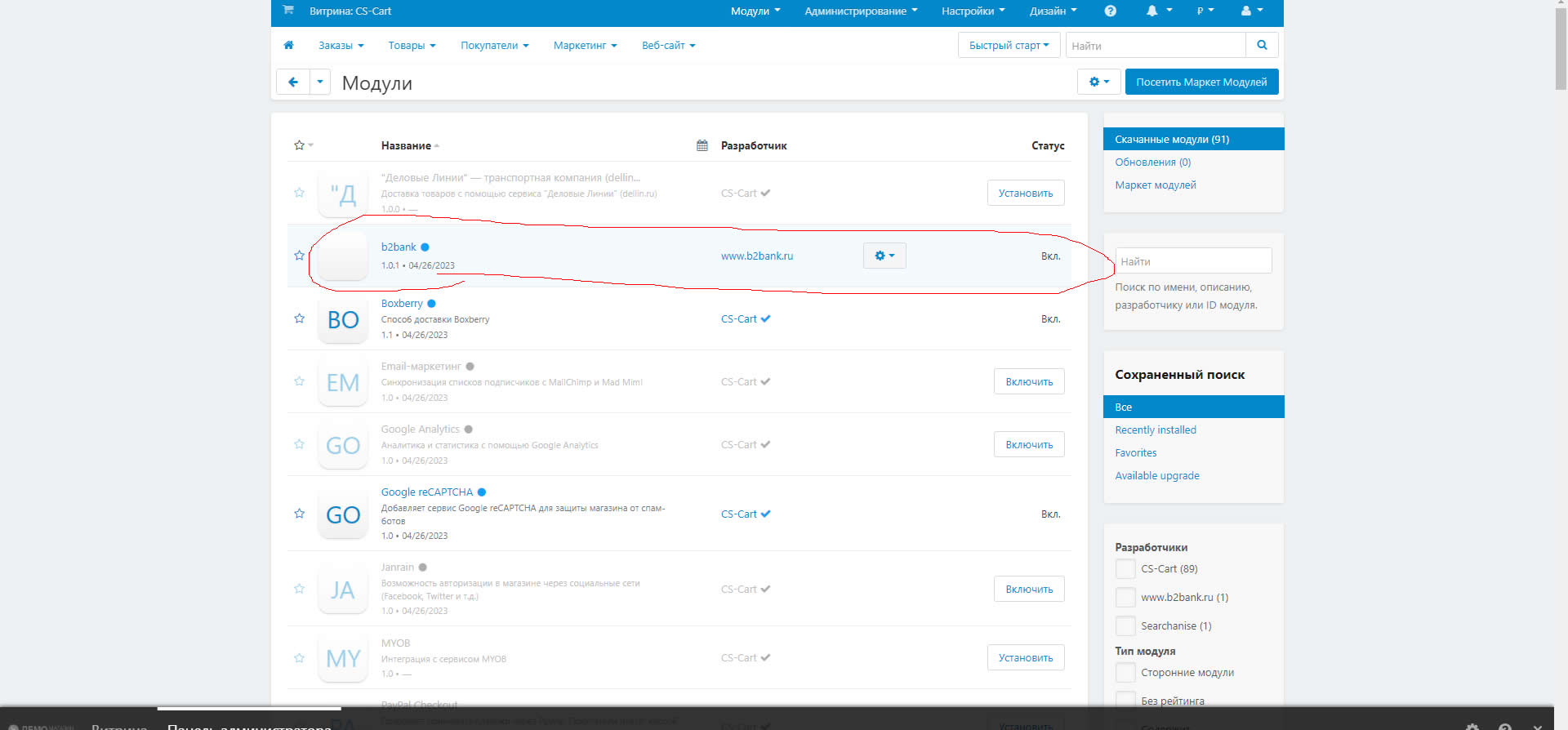 Интеграция B2B CMS Cs-Cart