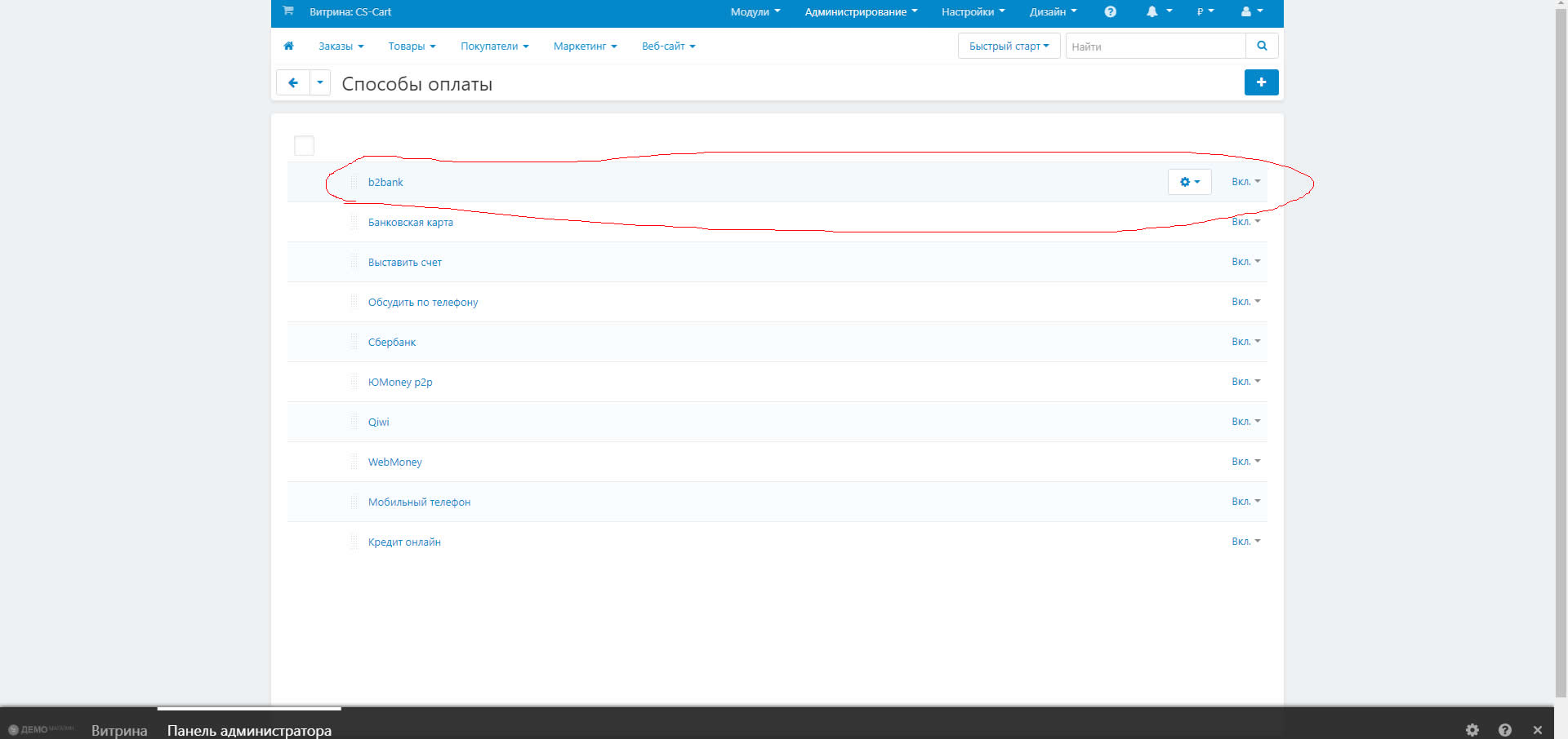 В результате добавления в списке появился способ оплаты - b2bank.