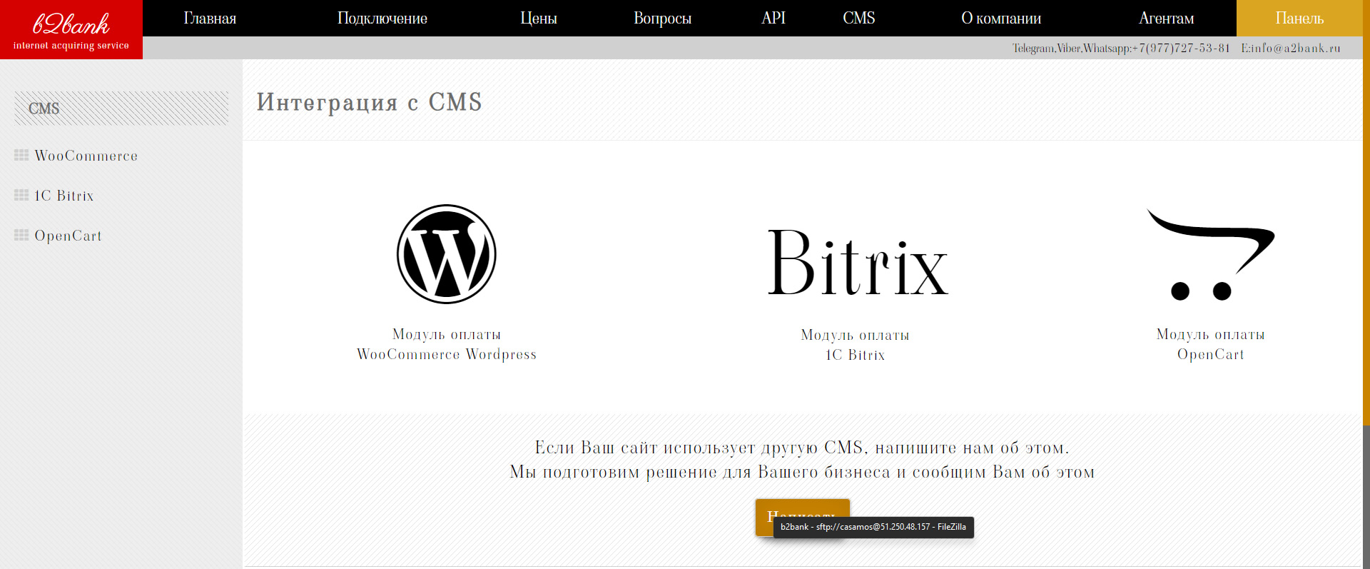 платежный модуль к Вашей CMS и оповестим Вас